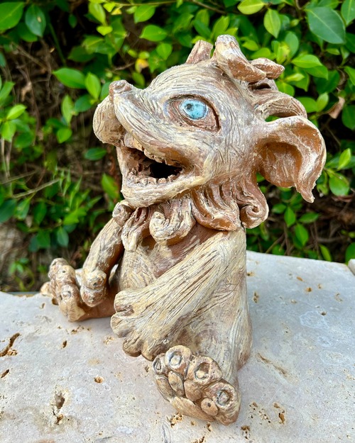 陶芸家KYUMA YASUIによって生み出された、ユーモアあふれるシーサー作品です。